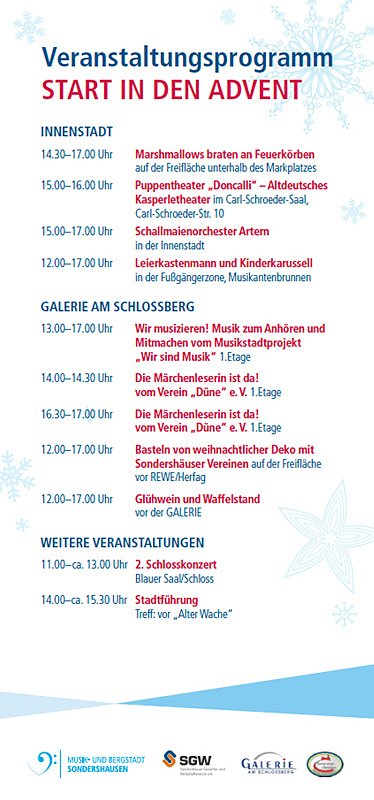 Mit einem verkaufsoffenem Sonntag und dem Adventsmarkt beginnt in Sondershausen der Start in die Adventszeit. Wir haben schon mal das Programm zum Notieren.