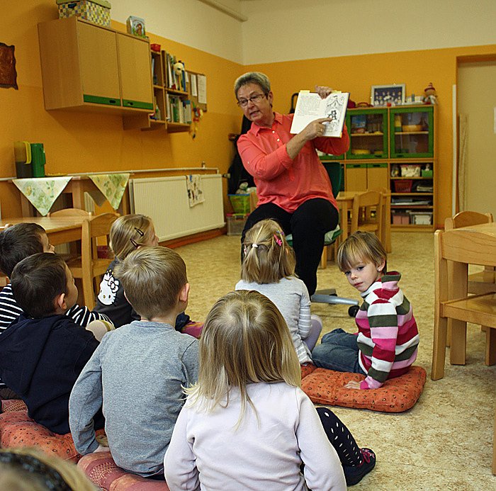 Autor: khhKaum hatte Kersten Steinke jedoch den Gruppenraum betreten, stürmten die Kinder der Spatzen- und der Goldfischgruppe schon auf sie zu, um ihre gemalten Igelbilder zu zeigen, vom Vogel Bubi oder der Ritterburg zu erzählen, mittendrin auch ihre beiden Enkelkinder. Also musste das Vorlesen der Zirkusgeschichten und der vom Räuber Hotzenplotz noch ein wenig warten.