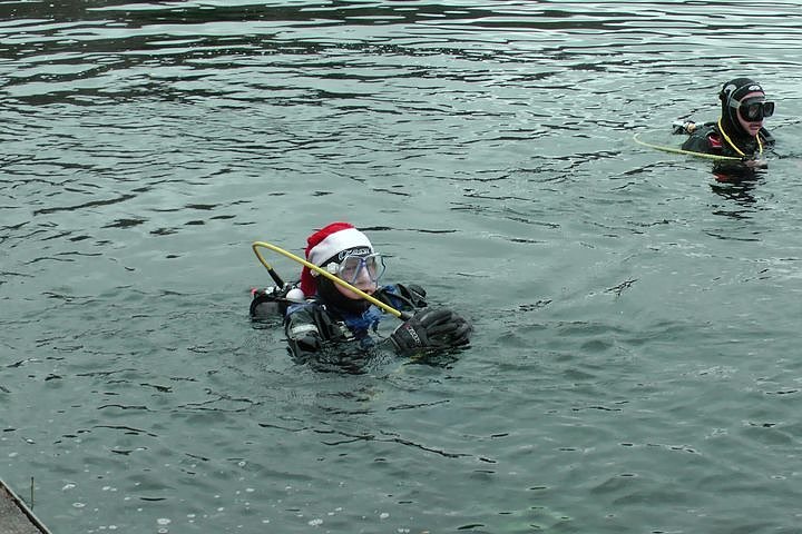Eine Taucherin und vier Taucher hatten es dieses Mal in die Hand genommen und einen Weihnachtsbaum versenkt, etwas früher im Jahr als sonst. Voriges Jahr am 16. Dezember lag auf dem Bebraer Teich schon eine dicke Eisschicht, die erst durch gehackt bzw. gesägt werden musste. Da war es heute bei 5° Wassertemperatur ja richtig gemütlich. Die Sportler kamen u.a. aus Sondershausen, Thalebra, Clingen und Grünningen.
