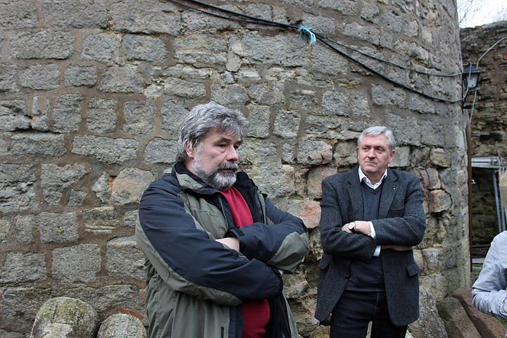 Im Rahmen einer Übergabe eines Spendenschecks des LIONS-CLUB Sondershausen an die Interessengemeinschaft Burg Straußberg informierte sich der Präsident des Sondershäuser Lions- Clubs, Dr. Michael Fruth (re.) beim Vorsitzenden der Interessengemeinschaft, Peter Steinhardt, über die gelaufenen Maßnahmen und vor allem das, was noch passieren soll.