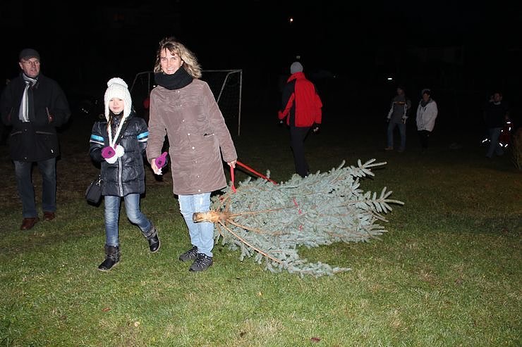 Auch am gestrigen Samstag war es so. Es waren etliche Leute unterwegs, die Weihnachtsbäume auch nach Jechaburg schleppten, oder sie ziehender weise transportierten. Und am Sportplatz in Jechburg gab es sogar eine Kontrolle. Nein, hier wurde kein Einlassgeld gefordert, im Gegenteil, wer einen Weihnachtsbaum mitbrachte, bekam ein Freigetränk, ob Saft, oder Glühwein und hier wurden die Marken ausgegeben.