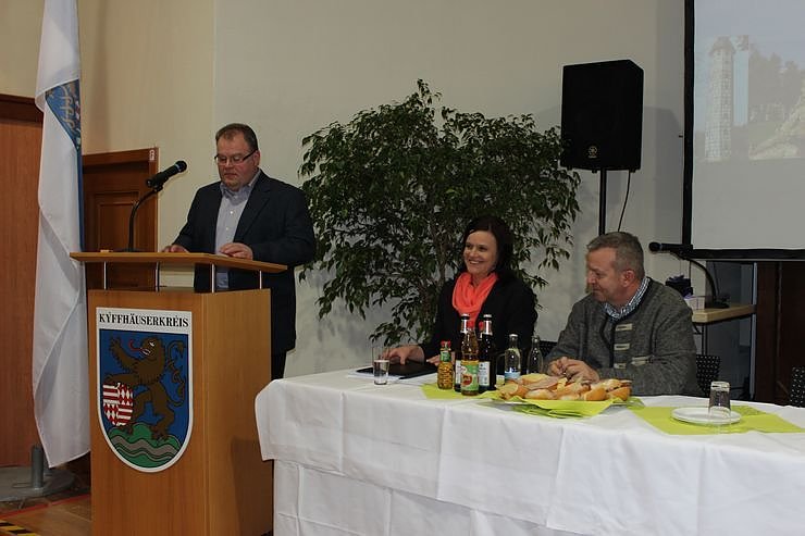 Autor: khhSeit Oktober arbeitet die gemeinsame Rettungsleitstelle und deren Leiter Tobias Mielke berichtete kurz über den Stand der bisherigen Fusion. Er nutzte die Chance, da gestern die Landrätin des Kyffhäuserkreises, Antje Hochwind (SPD) 64 Einsatzkräften des Katastrophenschutzzuges des Kyffhäuserkreises die Ehrenmedaille für die Fluthilfe 2013 überreicht worden war (FLUTHELFER GEEHRT ).