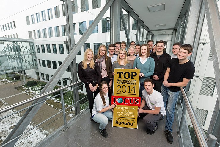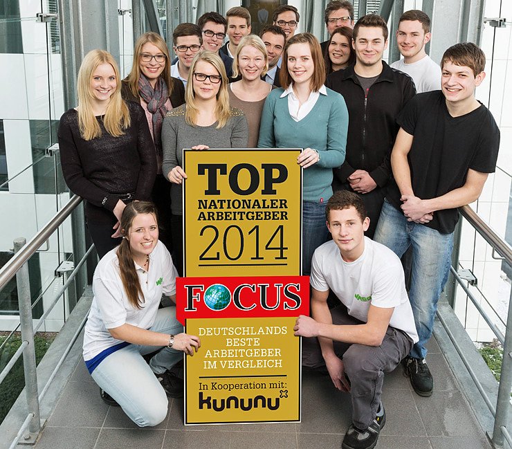 Ein starkes Wir-Gefühl und Innovationskraft machen WAGO laut Focus zu einem der besten Arbeitgeber Deutschlands. Stolz präsentieren Mitarbeiter am Stammsitz in Minden das Gütesiegel des Münchener Nachrichtenmagazins. Fotos: WAGO