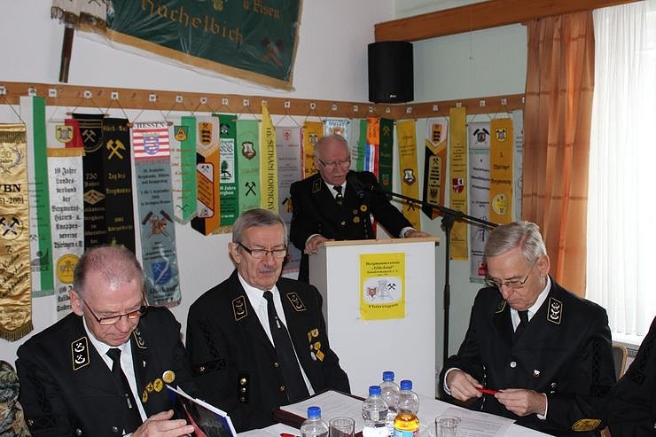 Der Vereinsvorsitzender Günter Otto hielt den Rechenschaftsbericht. Auch im 21. Jahr des Bestehens unseres Vereins können wir auf eine Erfolgsbilanz zurück schauen, sagte er. Sei es beim erfolgreichen Vereinsleben Fahrten nach Goslar oder zur Bergparade ins benachbarte Sangerhausen, oder bei der erfolgreichen Durchführung des Bergmannsfamilientages im Sommer des Jahres mit dem Bürgermeister von Sondershausen als Schirmherrn, auch wenn das Wetter 2013 nicht so recht mitspielen wollte. Der Dank von Günter Otto ging an alle Beteiligten und den Spendern für die erfolgreiche Durchführung.