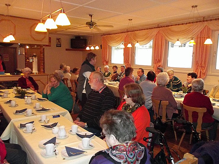 Nach dem Schlusswort der Wohnbezirksvorsitzenden Frau Groß ging es dann zum gemütlichen Teil über. Das Juventas Team hatte wieder verschiedene selbst gebackene Kuchen und Kaffee im Angebot. Bei diesem köstlichen Angebot fällt einem die Wahl oft nicht leicht. Wenn bloß die verflixten Kalorien nicht wären, dann würde man ja gerne mehrere Stückchen genüsslich verzehren und eventuell konsequenterweise das Abendmahl dann ausfallen lassen. Das muss aber jeder für sich selbst entscheiden.