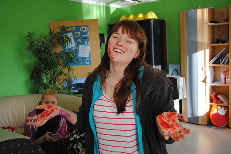 Die Teilnehmer wurden in 5 Gruppen aufgeteilt und los ging es im Stationsbetrieb. Geübt wurden unter anderem die stabile Seitenlage, die Herz-Lungen Wiederbelebung und der fachgerechte Umgang mit dem Tragetuch und beim Transport mit der Trage. Als besonderes Highlight wurde von der DRK Mimengruppe noch ein realistischer Unfall nachgestellt, bei dem die Helfer vom THW Ihr erlerntes Wissen gleich noch einmal unter realistischen Bedingungen üben konnten.