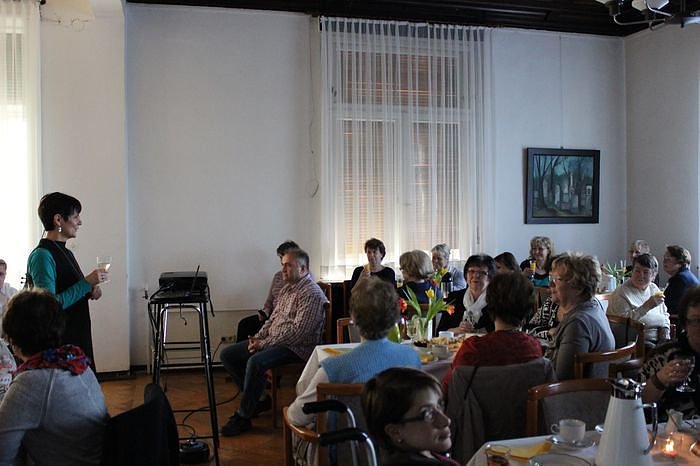 Angela Böhme würdigte in kurzen Worten die Bedeutung des Internationalen Frauentags. Mit einem Toast wurde erst mal zu Kaffee, Tee und Kuchen übergeleitet. Bei Kaffee und Tee handelt es sich um Fair Trade Produkte aus dem EineWeltladen in Sondershausen.
