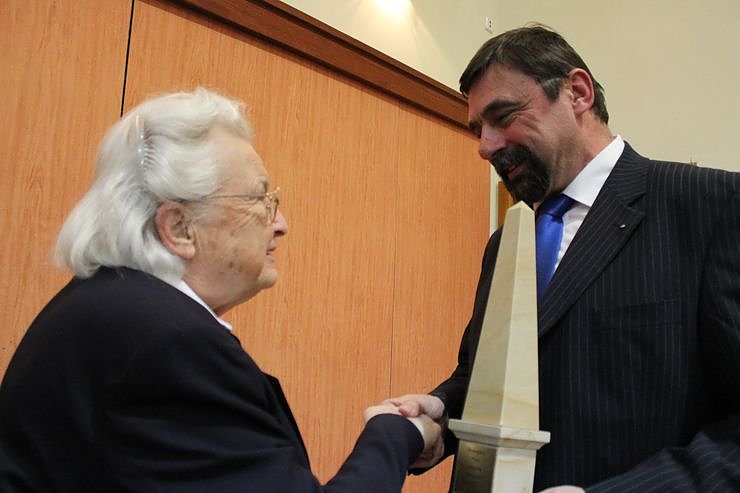 Autor: khhBürgermeister Joachim Kreyer (CDU) überreichte den symbolischen Obelisken an Susanne Bärwinkel.
