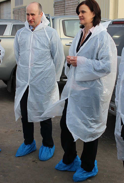 Die Veranstalter der eigentlichen Konferenz im Landratsamt Landrätin Antje Hochwind und der Vorsitzende des Kreisbauernverbandes Dr. Wolfgang Peter hatten im Landratsamt wieder wieder "normales Outfit" angenommen. Beim Besuch bei der Agrar- GmbH Oldisleben hatte man die 2013 neu erbaute Milchviehanlage für 279 Tiere besichtigt.