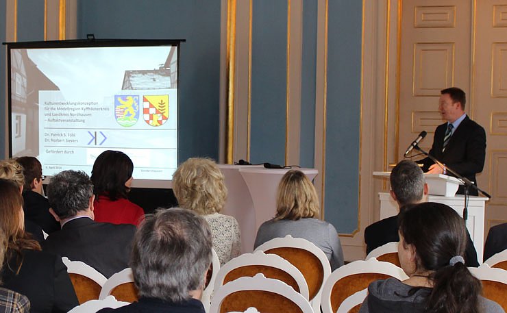 Das Institut für Kulturpolitik Bonn (IfK) präsentierte die Ergebnisse der bereits erarbeiteten Strukturanalyse in der Nordthüringer Region, und berichtete über Potenziale und Herausforderungen, die für die Weiterentwicklung der kulturellen Infrastruktur notwendig sind. Projektleiter Dr. Patrick S. Föhl der Projektleiter des Konzepts sagte, es gehe heute noch nicht darum, schon Empfehlungen zu geben. Auch wenn es heute den Startschuss gab, im Vorfeld gab es bereits Gespräche mit 20 Kulturexperten der Region. Mit Beiräten Bestandsanalysen und u.a. öffentlichen Veranstaltungen soll ein für die Region geeignetes gemeinsames Kultur konzept geben.