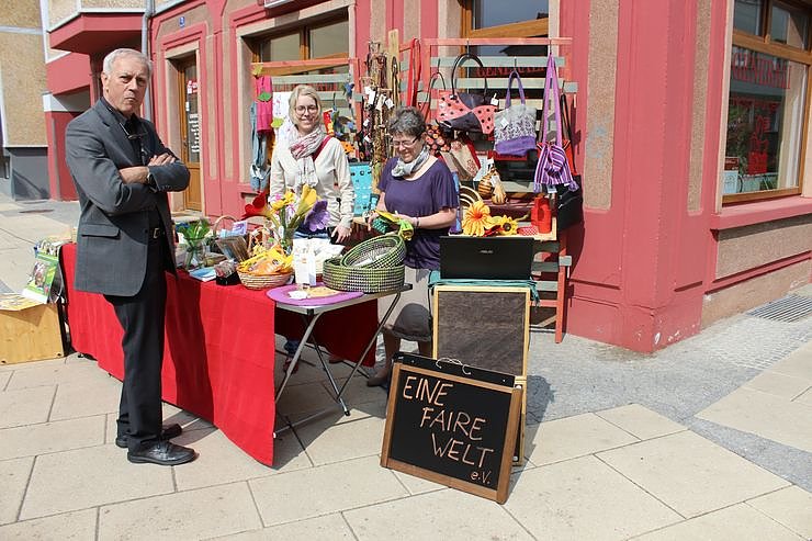 Auch der der Verein "Eine Faire Welt" zeigte sich präsent und bot später auch Tee an. Etwas knapp sah es allerdings in einer Hinsicht aus. Vielleicht hätte man auch den einen oder anderen Getränkehändler engagieren können. Bei so schönem Wetter wird man durstig.