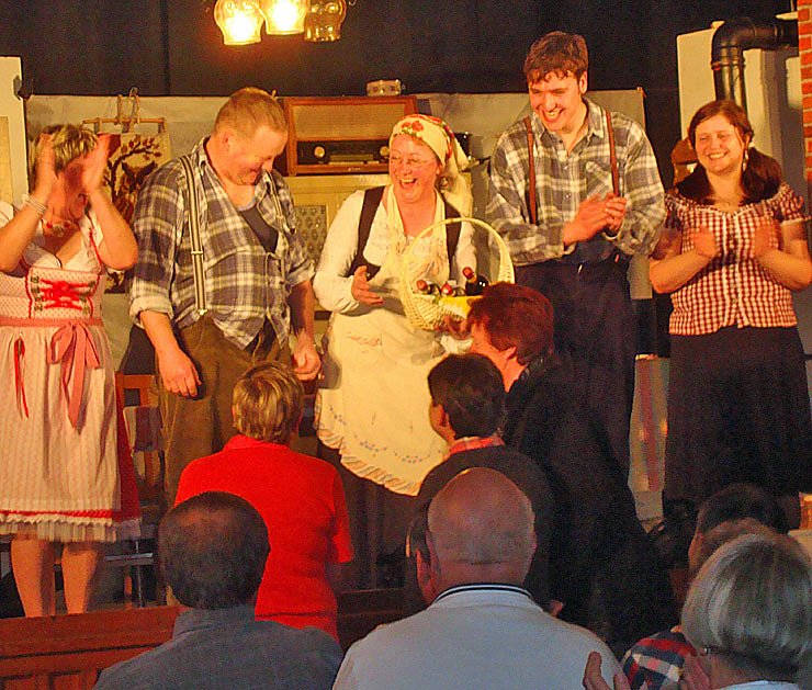 Dabei brachten die Laiendarsteller aus Urbach die über 200 Besucher aus Ebeleben und zahlreichen Orten der Umgebung mit ihrem volkstümlichen Stück De Musklunker immer wieder zum Lachen und so manche Episode erinnerte an eigene frühere Erlebnisse. Nach Aussagen der Darsteller soll sich so manche Begebenheit in der Vergangenheit tatsächlich in Urbach so zugetragen haben.