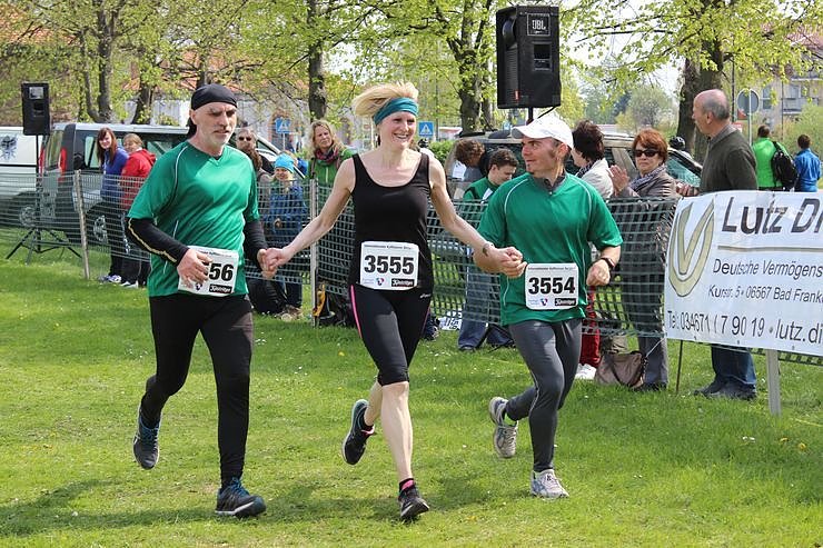 Aber nicht nur die Prominenz bekam viel Beifall, wie hier dieses Trio beim Einlauf im Ziel