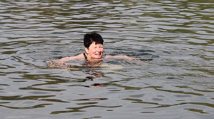 Hier war sie noch im Wasser, später verriet Regina Girschele gegenüber kn, dass gestern ein sehr erfolgreicher Arbeitseinsatz am Bebraer Teich abgelaufen war. Zeitweise bis zu 50 Helferinnen und Helfer hatten das Bad auf "Vordermann" gebracht, damit es später für die Besucher geöffnet werden kann.