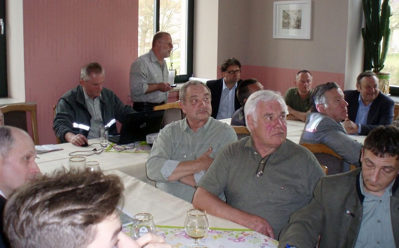 Klaus-Wilhelm Brüggemann (Forstamtsleiter Bleicherode-Südharz) präsentiert die Ergebnisse des Verbiss- und Schälgutachtens des Landkreises Nordhausen vor Waidgenossen der verschiedenen Jagdgenossenschaften.