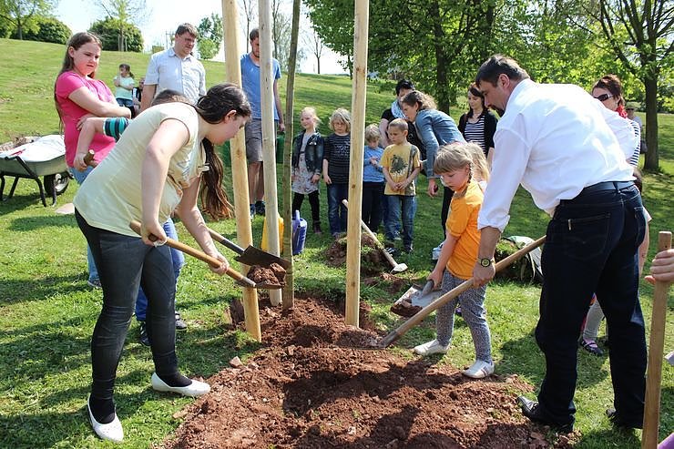 Mit unter die Gärtner gegangen ist Sondershausens Bürgermeister Joachim Kreyer (CDU). Am Nachmittag packte er kräftig an dem rund 75 kg schweren "Setzling" Trauben-Eichezu. Sowohl vom Bürgermeister, als auch vom Projektleiter Rene Most vom Stadtjugendring gab es viele Informationen rund um die Trauben-Eiche. Oder wussten Sie, dass sie bis zu 40 Meter hoch werden kann und einen Durchmesser bis zu zwei Metern? Und begehrt ist das Eichenholz allemal ob im Wasserbau oder auch als Weinfass.