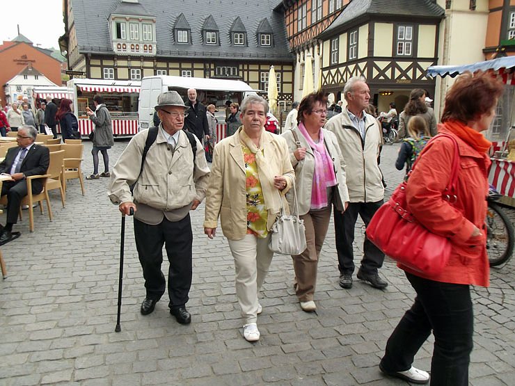 Es gibt übrigens auch eine direkte Verbindung des Wernigeröder Adels zur Stolberger Adelsfamilie im Harz. Das Stolberger Schloss hatte unsere Gruppe ja bereits im vergangenen Jahr besucht. Nach dieser interessanten Führung fuhren wir mit der Bimmelbahn bis zum Historischen Wernigeröder Rathaus und hatten nun Zeit für die individuelle Gestaltung. Die meisten von uns kehrten aber erst einmal in eines der vielen Gasthäuser ein, um sich wieder zu stärken.