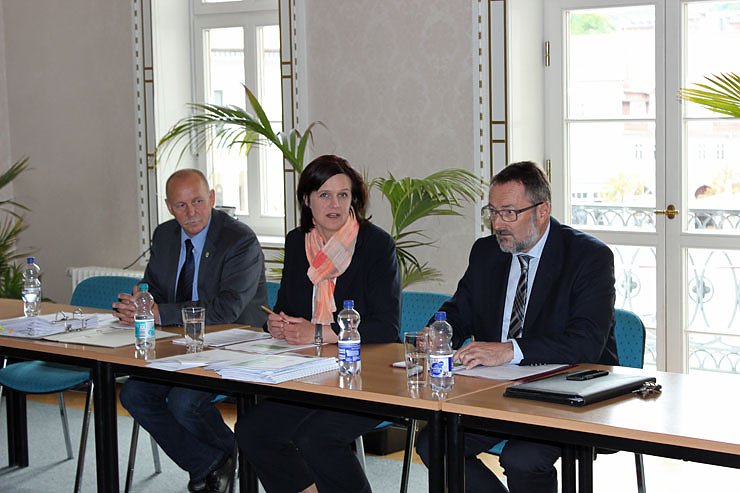 Landrätin Antje Hochwind und LEG-Geschäftsführer Frank Krätzschmar (re.) äußerten sich überzeugt davon, dass der kontinuierliche Rückgang der Arbeitslosenquote ursächlich auch auf die Impulse der Wachstumsinitiative zurückführbar waren.