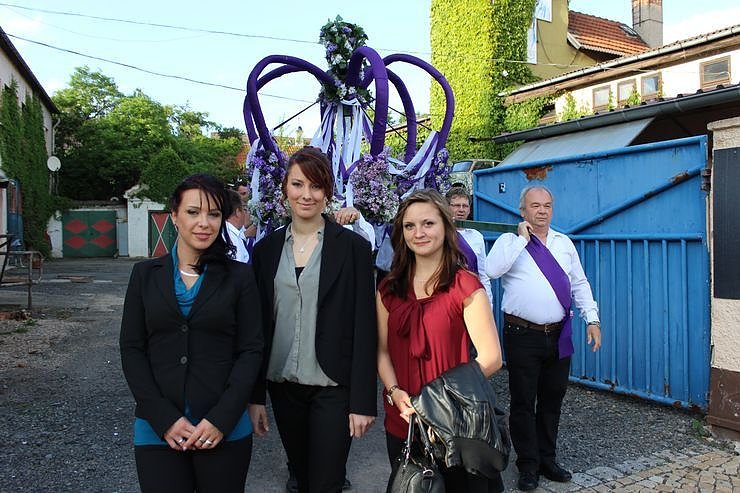 Nach dem Setzen der Fliederkrone geht es zum Festzelt mit der Wahl der neuen Fliederkönigin.