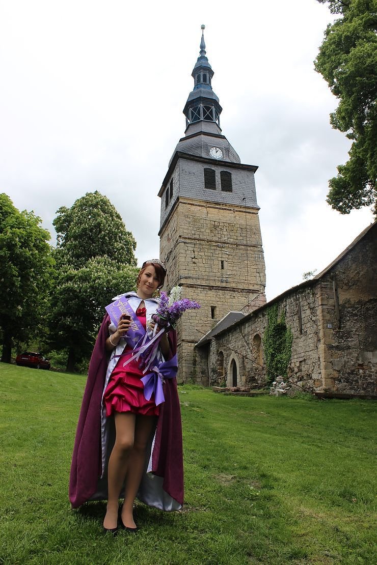 Es ist zur Tradition geworden, dass nach der Pflanzung eines Fliederbaums die neue Fliederkönigin dem schiefen Turm der Oberkirche Bad Frankenhausen ihre Referenz erweist, und viele regionale Majestäten mitbringt...