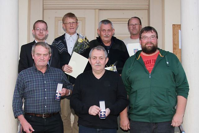 Hintere Reihe von links: Bürgermeister Steffen Lupprian, Edgar Schmidt, Heinz Kasten und Achim Neblung