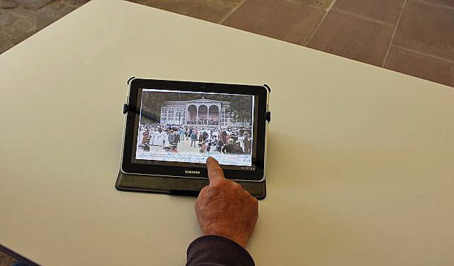 Bei der Postkartentauschbörse brachte ein Anbieter nicht sein ganzen Kisten mit, sondern er zeigte seine Raritäten per Tabelt-PC .