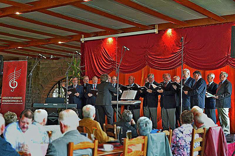 Und zahlreiche Chöre der Region waren am Sonntag, dem 18. Mai 2014 in der Geststätee Burghof auf dem Kyffhäuser an diesem Chortreffen dabei. Damit standen an diesem Nachmittag ca. 300 Sängerinnen und Sänger auf der Bühne und beweisen, dass Singen Freude macht