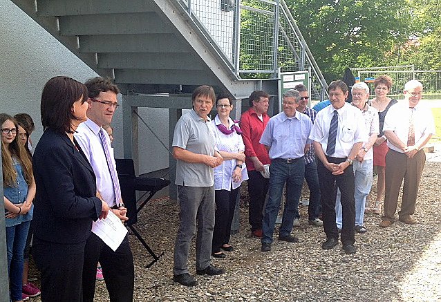 Im Beisein von Landrätin Antje Hochwind (SPD) sowie Bürgermeister Steffen Sauerbier (SPD) wurde hierzu gemeinsam mit dem Schulleiter und Schülern der symbolische Spatenstich vollzogen.