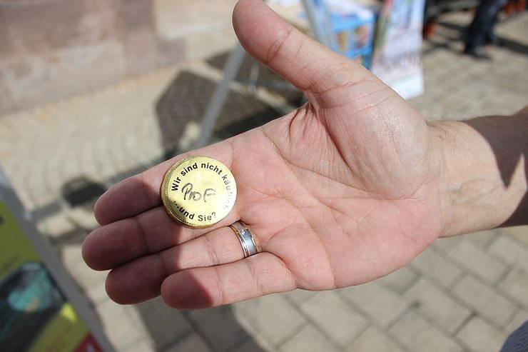 Nächste Station war der Stand von ProFrankenhausen. Die sagte man sei nicht käuflich und gaben Falschgeld aus, wie hier zu sehen ist. Bezahlen konnte kn nicht damit, aber es schmeckte. Hier agitierte man auch gleich gegen Rechts.