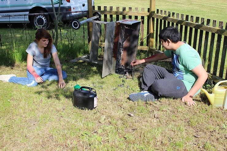 An einem weiteren Ausbildungspunkt ging es um das richtige Verhalten bei einem Verbrennungsunfall, hier simuliert beim Grillen. Dabei ging es um Verbrennungen und Selbstschutz dabei.