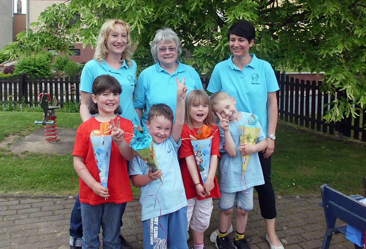 Unsere vier Schulanfänger zeigten ein kleines Programm, machten Spiele mit den Eltern und bekamen ihre erste Schultüte von der Kita. Danach gab es leckere Salate, Würstchen und Steak und jede Menge Leckereien. Wir wünschen unseren Schulanfängern einen guten Start und eine schöne Schulzeit.