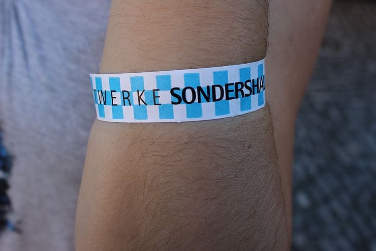 Ab 22:00 Uhr bis 01:00 Uhr wird es beim diesjährigen Residenzfest eine Änderung geben. Wer sich nicht vorher dieses oben gezeigte Bändchen durch einen Besuch des Schlosshofes bis 22:00 Uhr gesichert hat, der muss später Eintritt zahlen. Neu: Ab 22:00 Uhr kostet es 5,-- Euro Eintritt aber, und das Gute daran ist, wer vor 22:00 Uhr den Schlosshof betreten hat, muss auch für die DJs keinen Eintritt nachbezahlen.