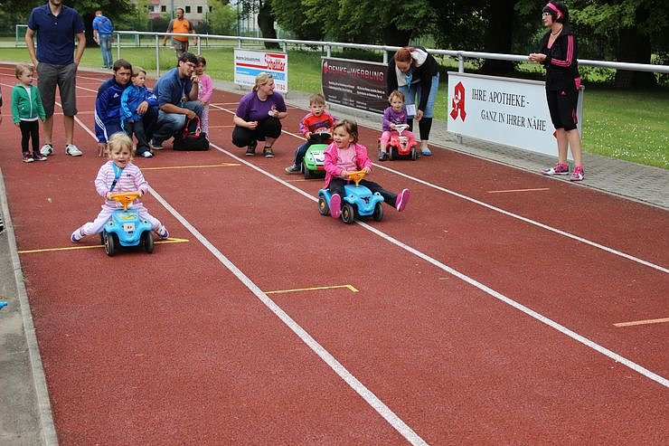 Insgesamt 14 Stationen konnte man mitmachen, so den 60 Meterlauf, Weitsprung, Hindernisparcours, Torwandschießen, Tauziehen, Schwungtuch, Eier-Laufen, Sackhüpfen, Schokokussweitwurfmaschine, Büchsen zielen, BobbykarRennen, Schubkarrenrennen, Slake-Line und Stiefelweitwurf.