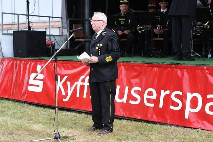 In einer kurzen Ansprache bedankte sich der Vereinsvorsitzende des Bergmannsvereins Sondershausen e.V., Günther Otto, bei den vielen Sponsoren, die dieses Bergmannsfamilienfest unterstützen. Otto bezeichnete diesen Familienbergmannstag zusammen mit dem Barbaratag als die wichtigsten Feiertage für Bergleute und Bergbau-Senioren. Otto war es auch der dann das Bergmannsfamilienfest eröffnete.