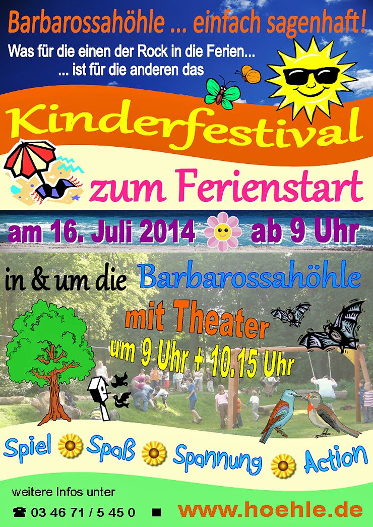 In Artern findet wieder ein Beratungssprechtag der IHK statt und an der Barbarossahöhle in Rottleben gibt es zum Ferienstart ein Kinderfestival...
