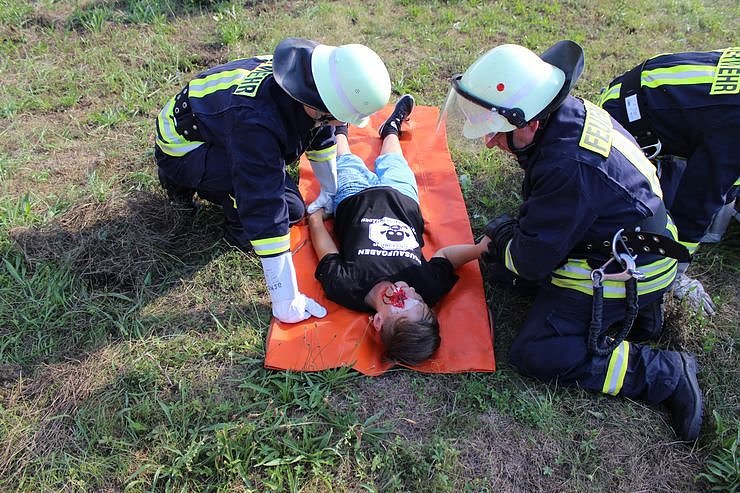 Durch eine nicht geschlossene Schranke gibt es einen Auffahrunfall des mit rund noch 40 km/h schnellen Zuges, der zwei auf einem Bahnübergang befindliche Fahrzeuge trifft. Auch wenn die Übung erst um 17:15 startete man hatte viele Statisten mit Wunden zu versorgen, damit das Ganze für die Rettungskräfte echt aussieht, schließlich gab es bei dem gedachte Unfall fünf Tote.
