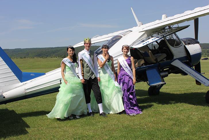 Am superheißen Pfingstwochenende trauten sich vor allem die Hoheiten unserer Region in die Lüfte. Es ist zu einer guten Tradition geworden, die frisch gekürte Fliederkönigin und ihren Uderslebener Kollegen, den Laubkönig mit seinen Hofdamen über ihr Reich zu fliegen. Lisa I. genoss das Flugplatzmilieu ganz offensichtlich und war nicht nur zu einer ungewöhnlichen Fotosession und dem obligatorischen Rundflug in der Wilga bereit sondern zeigte sich beim Segelkunstflug nicht nur besonders mutig sondern auch total begeistert.