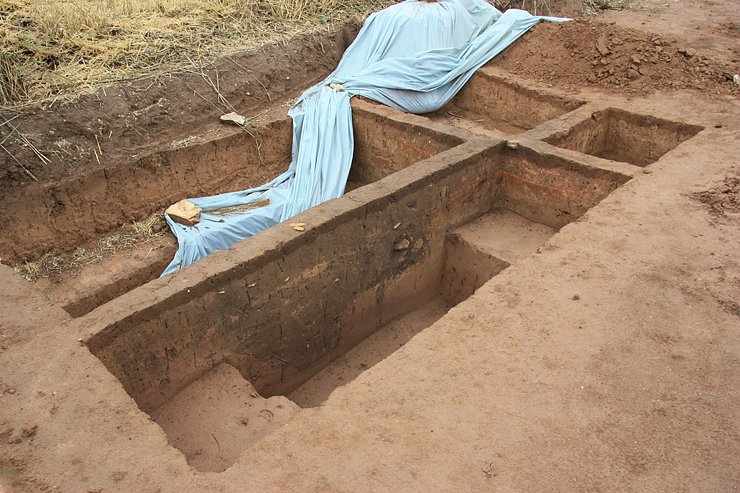 Foto: Verstürzter Backofen im römischen Marschlager von Hachelbich während der Freilegung (© TLDA)