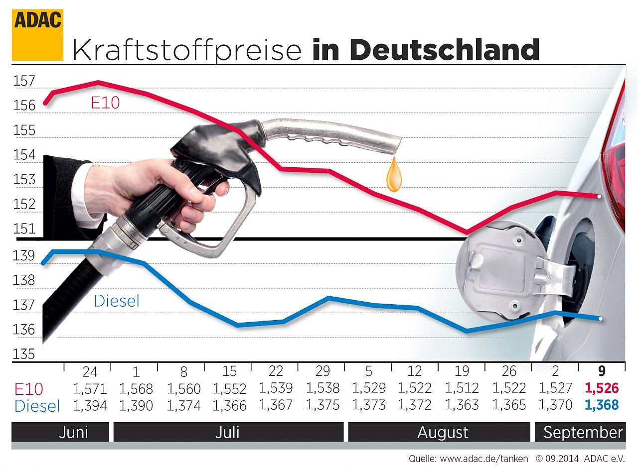 Eine aktuelle ADAC Auswertung zeigt, dass die Kraftstoffpreise leicht nachgeben. Ein Liter Super E10 kostet im bundesweiten Durchschnitt 1,526 Euro. Das sind 0,1 Cent weniger als in der Vorwoche. Der Dieselpreis fiel ebenfalls, und zwar um 0,2 Cent pro Liter auf durchschnittlich 1,368 Euro...