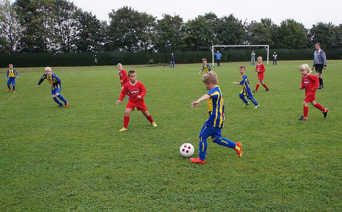 Es dauerte bis zur 13. Minute, als abermals Lio-Nils im Nachsetzen für das 0:2 sorgte. Nun begann der erfolgreiche Auftritt des Julian Reinsch innerhalb von 4 Minuten in seiner robusten Art. Zuerst vollendete er einen von Lio-Nils Heller getretenen Eckball unhaltbar zum 0:3, dann schaltete er vor dem gegnerischen Tor am schnellsten und schob aus Nahdistanz zum 0:4 ein und schließlich wurde der Ball im Mittelfeld abgefangen und über die Stationen Sebastian Knaus, Maurice-Elias Müller und Julian Reinsch gut herausgespielt zum 0:5-Halbzeitstand im Tor unter gebracht. Damit erzielte Julian einen lupenreinen Hattrick.