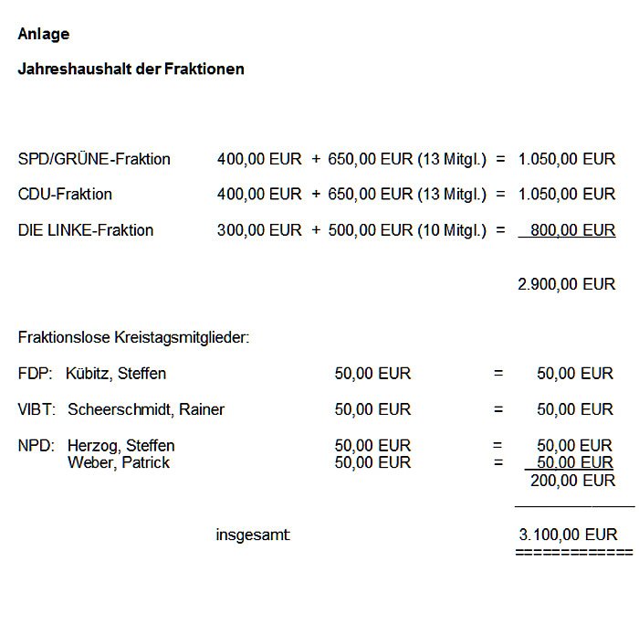 Die Abrechnung des Vorjahres, ist Voraussetzung für die Auszahlung des Fraktionsgeldes des Folgejahres.