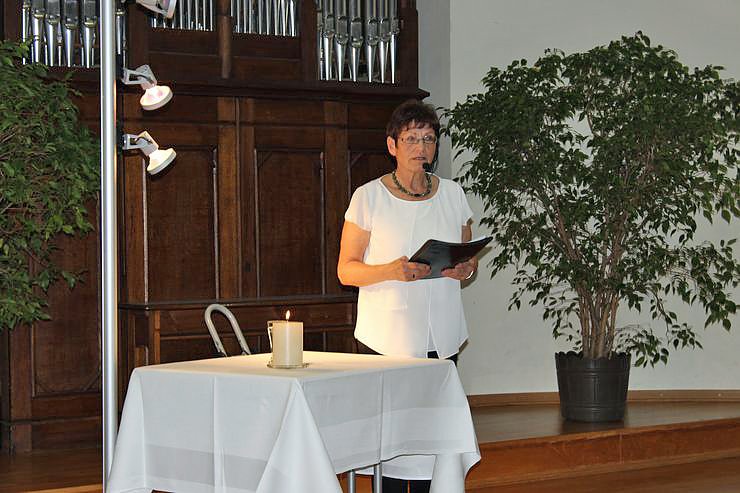 Im weiteren Verlauf der Veranstaltung las sie aus Originalbriefen von Otto Wandern und einem Originaltagebuch von Paul Warmut. Mit im "Westen nichts Neues" las sie auch kurz aus dem Roman von Erich Maria Remarque, der die Schrecken und Grauen des Ersten Weltkriegs aus der Sicht eines jungen Soldaten schildert.