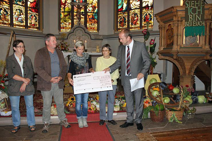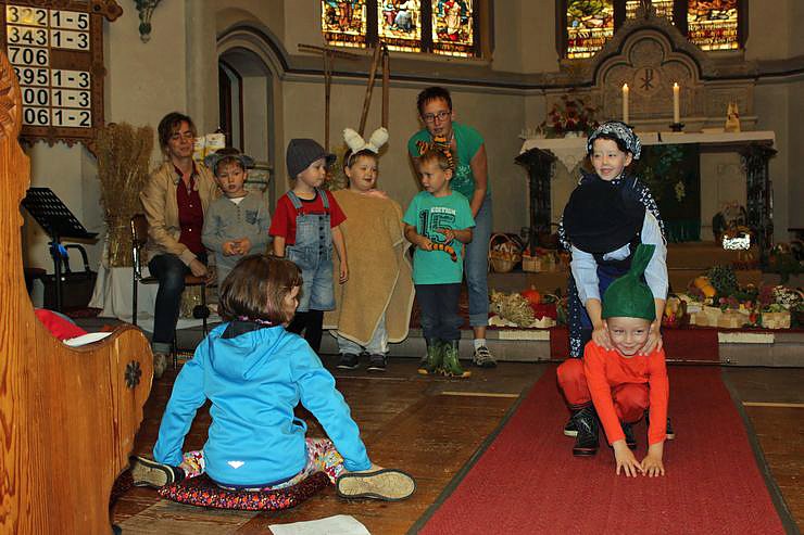 Für das am gleichen Ort am Sonntag stattfindende Erntedankfest hatte die Kinder jede Menge Früchte und Gemüse mitgebracht.