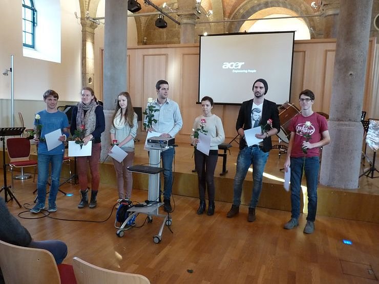 Bevor zum Abschluss vom Landesjugendensemble für Neue Musik Thüringen gemeinsam mit den den Komponisten die Gemeinschaftskomposition zum Film "Endstation Paradies" gespielt wurde, gab es für die jungen Komponisten noch die Teilnahmeurkunde für die Teilnahme am Workshop.