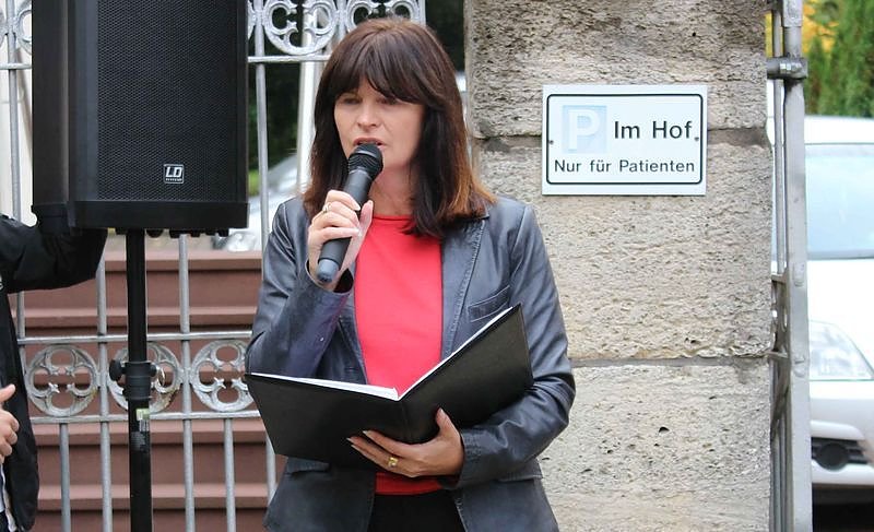 Autor: khhErster Verlegeort war der Gehweg vor dem Grundstück Güntherstraße 57. Hier hatte die erste Beigeordnete der Stadt Sondershausen, Cornelia Kraffzick (SPD) zahlreiche Bürger begrüßen können.