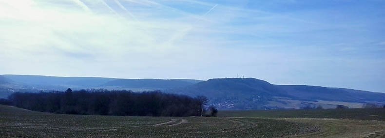 Richtig, am Waldrand stand da mal eine Informationstafel, so richtig schön groß mit Dach, damit das Bild mit den Informationen auch schön lange hält. Die Informationstafel war von der Naturparkverwaltung Kyffhäuser aufgestellt wurden. Das Foto ist leider nicht von der besten Qualität, aber man kann erahnen, wie es dort mal aussah.