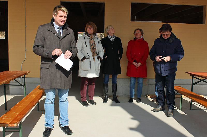 Klaus-Uwe Müller (ganz rechts) von Aquatekt gab noch Einzelheiten für das Mehrzweckgebäude an, dass solche Funktionen wie Kasse, Umkleidekabinen usw. haben wird.