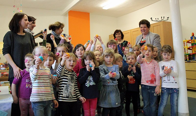 Vor allem die Kinder nahmen die bunten Eier gern an und bedankten sich mit Liedern und Gedichten. In Gesprächen mit den jeweils Verantwortlichen konnte sich Frau Holbe zudem ein Bild über die aktuelle Situation in den Einrichtungen machen.