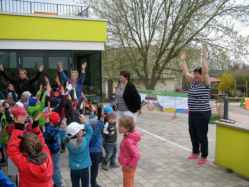 Den Kindern wurde das Verhalten am Fußgängerüberweg erläutert und danach das erfolgte die praktische Umsetzung. Im Anschluss wurde ein Hindernisparcours durchlaufen. Die Anforderungen an die Kinder waren in Bezug Konzentration, Koordination und Beweglichkeit hoch gesteckt.
