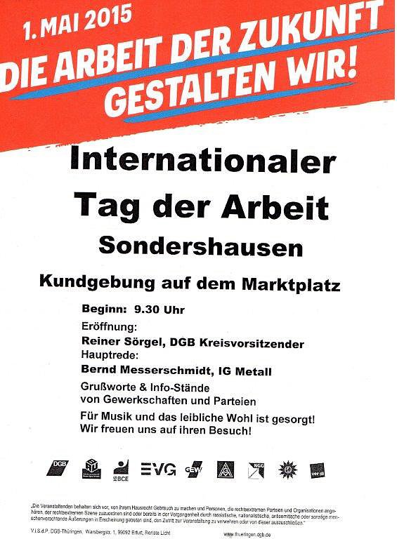 Die Kundgebung auf dem Marktplatz von Sondershausen steht unter der Überschrift "Die Arbeit der Zukunft gestalten wir"...